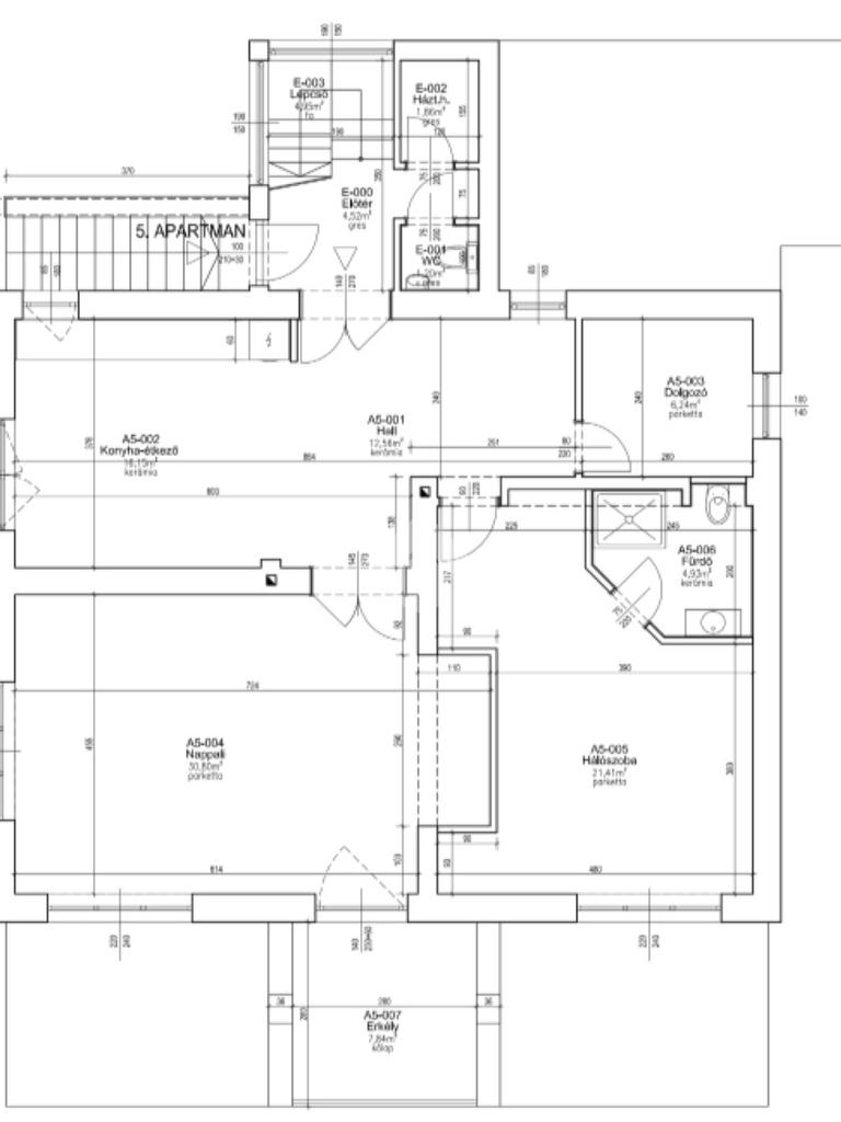 A emeleti lakószint tágas, világos terekkel fogad. A 30 nm-es nappali ideális közösségi tér lehet, melyet hálószoba, dolgozószoba és étkezős konyha egészít ki. A nappliból nyíló 8 nm-es erkélyről lenyűgöző, panorámás kilátás tárul elénk, amely valódi nyugalmat áraszt.