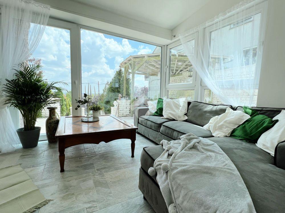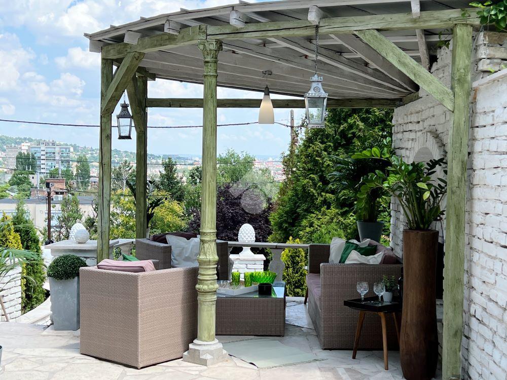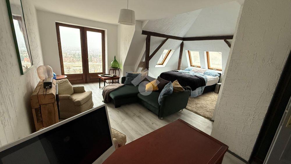 A beépített padlástér tovább növeli az ingatlan értékét: két szoba, két fürdpszoba, egy háztartási helyiség és egy 6 nm-es panorámás erkély került kialakításra, ahonnan a környező zöldövezet látványa minden napszakban különleges élményt nyújt.